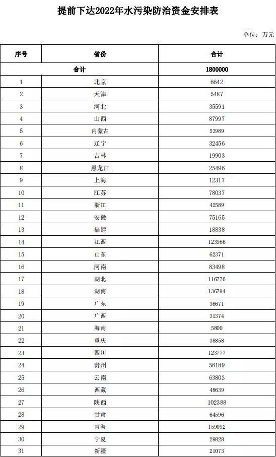 一年一度的水污染防治資金又來(lái)了。 2021年11月17日,財(cái)政部發(fā)布《關(guān)于提前下達(dá)2022年水污染防治資金預(yù)算的通知》,對(duì)2022年的水污染防治資金做了安排。2022年,全國(guó)水污染防治資金預(yù)算總計(jì)為180億,相比2021年的140億,增加了40億,增幅為28.57%。 在“提前下達(dá)202...