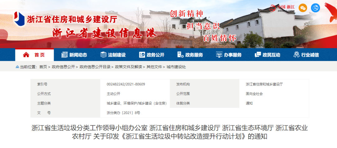 文章導讀10月15日,浙江省生活垃圾分類工作領導小組辦公室、浙江省住房和城鄉(xiāng)建設廳、浙江省生態(tài)環(huán)境廳、浙江省農業(yè)農村廳聯(lián)合印發(fā)《浙江省生活垃圾中轉站改造提升行動計劃》。計劃要求,到2022年底,所有大、中型中轉站完成改造提升;到2023年底,全省50%以上的中轉站完成改造提升;到2025年底,全省所...