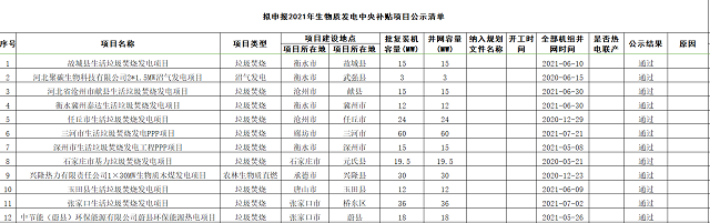 河北省擬申報2021年生物質發(fā)電中央補貼項目清單公示 按照國家發(fā)展改革委、財政部、國家能源局聯(lián)合印發(fā)的《2021年生物質發(fā)電項目建設工作方案》(發(fā)改能源【2021】1190號)文件及有關事項公告要求,經各市能源主管部門、財政部門聯(lián)合申報,我們對項目申報條件、項目申報信息、地方分擔資金承諾情況進行了審...