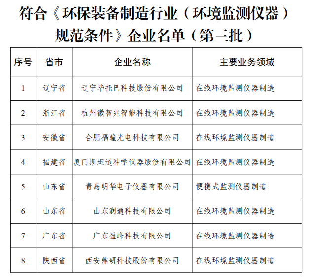 符合《環(huán)保裝備制造行業(yè)(環(huán)境監(jiān)測儀器)規(guī)范條件》企業(yè)名單(第三批)公示