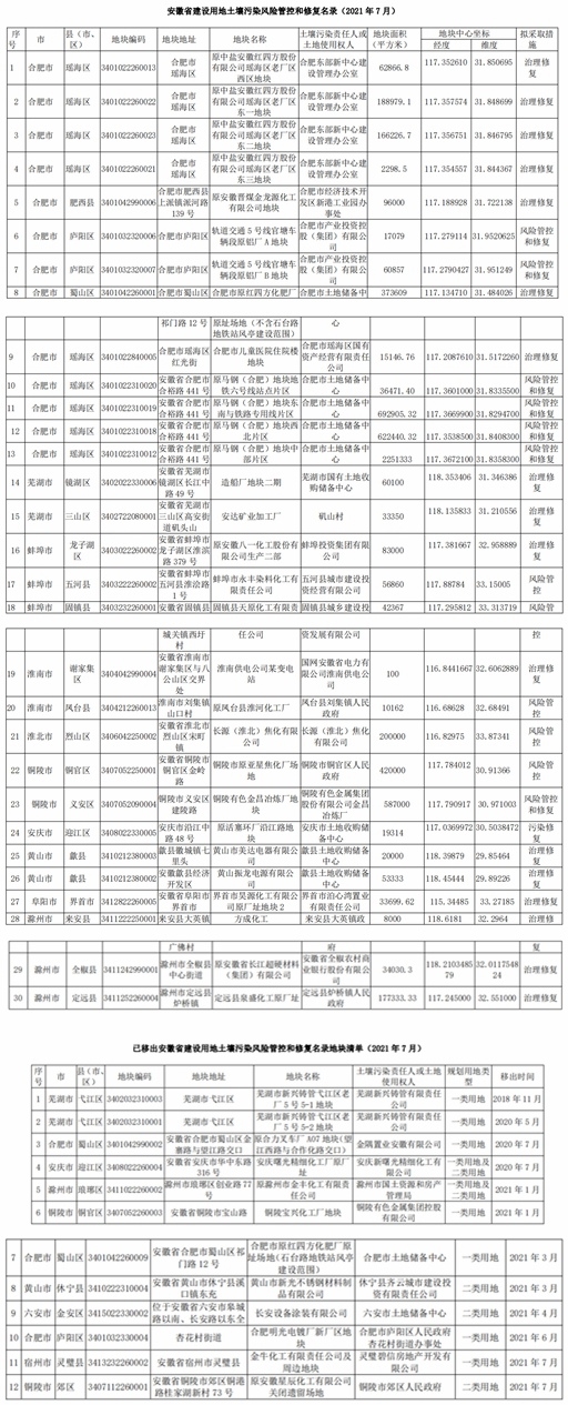 安徽省生態(tài)環(huán)境廳 安徽省自然資源廳關(guān)于更新《安徽省建設(shè)用地土壤污染風(fēng)險(xiǎn)管控和修復(fù)名錄》的公告 依據(jù)《中華人民共和國土壤污染防治法》和《污染地塊土壤環(huán)境管理辦法(試行)》,結(jié)合近期建設(shè)用地土壤污染狀況調(diào)查評(píng)估、風(fēng)險(xiǎn)管控和治理修復(fù)等情況,省生態(tài)環(huán)境廳會(huì)同自然資源廳對(duì)《安徽省建設(shè)用地土壤污染風(fēng)險(xiǎn)管控和修復(fù)...