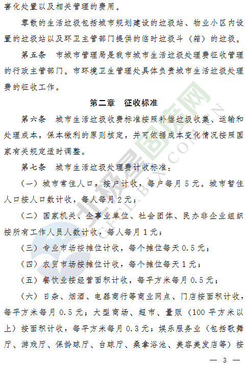 (一)城市常住人口,按戶計收,每戶每月5元。城市暫住人口按人口數(shù)計收,每人每月2元;