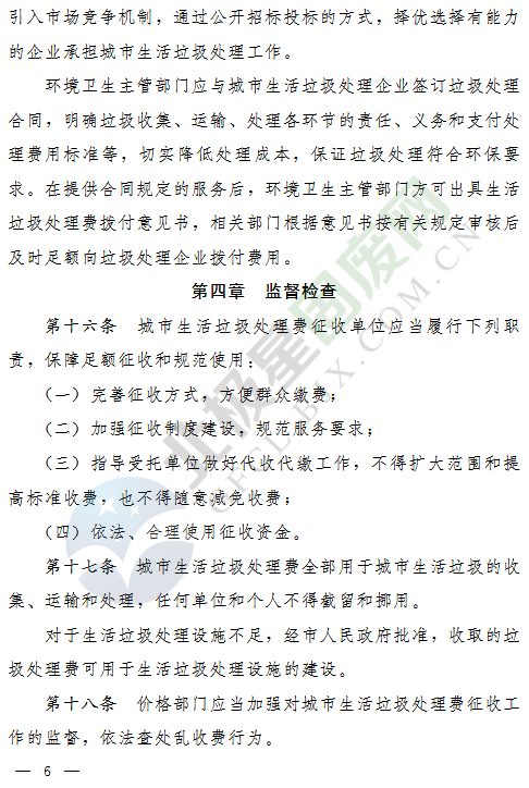 答:國家建設(shè)部《城市生活垃圾管理辦法》及《河南省城市生活垃圾處理管理辦法》中規(guī)定:國家對城市生活垃圾的清掃、收集、運輸和處理服務(wù)實行收費制度。