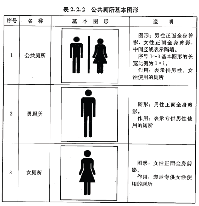 按照標(biāo)準(zhǔn)CJJ/T 125-2008《環(huán)境衛(wèi)生圖形符號(hào)標(biāo)準(zhǔn)》,公廁相關(guān)的主要圖形如上圖所示。