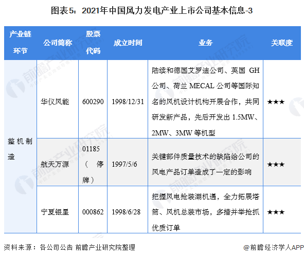 中游風力發(fā)電整機制造企業(yè):金風科技(002202)、明陽智能(601615)、上海電氣(601727)、運達風電(300772)、中車風電(601766)、東方電氣(600875)、湘電風電(600416)、太原重工(600169)、華儀風能(600290)、航天萬源(01185.HK)、寧夏銀星(000862)。