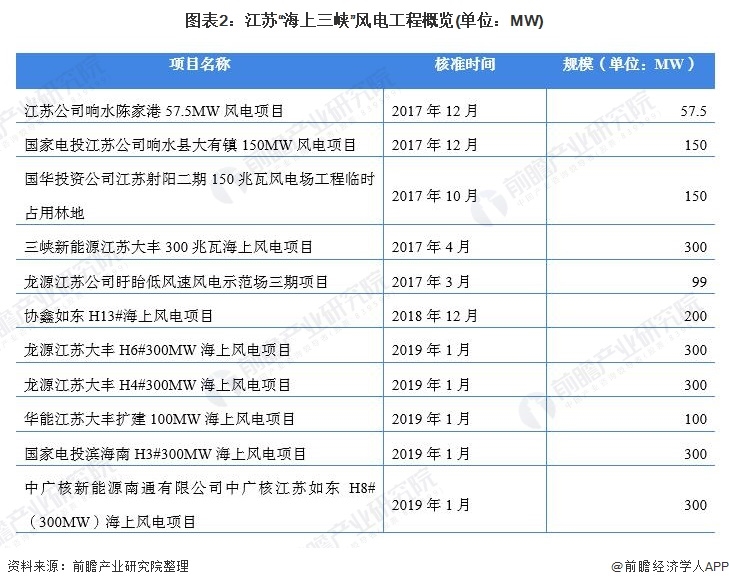 同時,江蘇省風(fēng)電場建設(shè)起步較早。早在2004年,全國第一個風(fēng)電特許權(quán)項目就落戶在江蘇省南通如東。2006年,江蘇省首座風(fēng)電場——南通如東龍源風(fēng)電場便建成。截止2018年底,江蘇省共投運56座風(fēng)電場。2019年,江蘇省發(fā)改委對外公布了24個新核準(zhǔn)海上風(fēng)電項目,投資規(guī)模達(dá)1222.85億元、裝機(jī)規(guī)模670萬千瓦。其中,南通海域項目13個,鹽城海域項目11個。加上此前并網(wǎng)發(fā)電的302.5萬千瓦已建項目,江蘇“海上三峽”風(fēng)電工程全部敲定。