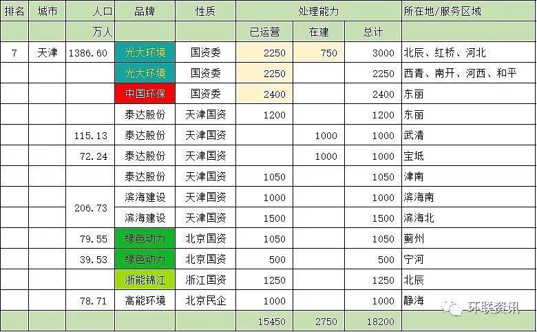 原本天津是天津國(guó)資的天下,泰達(dá)和濱海建設(shè)占多數(shù)項(xiàng)目,近幾年引進(jìn)了光大環(huán)境、中節(jié)能和高能環(huán)境。去年天津投產(chǎn)了北辰2250噸、西青2250噸、東麗2400噸、薊州二期350噸、靜海1000噸,今年還將投產(chǎn)寶坻1000噸、武清1000噸。天津的垃圾發(fā)電產(chǎn)能是明顯過剩,落后產(chǎn)能將會(huì)淘汰。如綠動(dòng)的薊州項(xiàng)目,二期建成后完成沒有利用起來。泰達(dá)的東麗項(xiàng)目被政府回收。濱海新區(qū)的兩個(gè)項(xiàng)目產(chǎn)能利用率低下,兩家垃發(fā)廠以上的品牌中數(shù)據(jù)完整度排名全國(guó)倒數(shù)。在光大環(huán)境和中國(guó)環(huán)保的三個(gè)超大項(xiàng)目建成后,小產(chǎn)能項(xiàng)目將會(huì)越來越艱難。