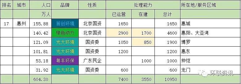 惠州是承接深圳、東莞溢出產(chǎn)業(yè)的先鋒,最近兩年惠州的經(jīng)濟(jì)發(fā)展迅速,人口也是急速增加。其中博羅和惠東都成為百萬人口縣城。惠州最大的垃圾發(fā)電廠是惠陽環(huán)境園,已運(yùn)營(yíng)+在建產(chǎn)能4600噸/天。但產(chǎn)能利用率不高,以后要協(xié)調(diào)污泥、一般工業(yè)固廢進(jìn)入環(huán)境園處理?;蓐栱?xiàng)目也是綠色動(dòng)力最大的項(xiàng)目。光大環(huán)境在惠州有三個(gè)項(xiàng)目,效率不錯(cuò),惠東還計(jì)劃建設(shè)1500噸/天的三期項(xiàng)目。首創(chuàng)環(huán)境的惠城項(xiàng)目在惠州并不突出,位置也比較偏遠(yuǎn)。惠州的項(xiàng)目產(chǎn)能有已過剩,擴(kuò)建的空間不大。
