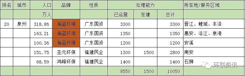 泉州市區(qū)是沒有垃圾發(fā)電項(xiàng)目的,全由附近的晉江、南安、惠安項(xiàng)目來處理市區(qū)垃圾。晉江項(xiàng)目擴(kuò)建后達(dá)到3300噸/天,目前的產(chǎn)能利用率很低,但未來還可能擴(kuò)建。泉州項(xiàng)目主要在瀚藍(lán)手上,圣元的南安項(xiàng)目也是非常了得,2800噸/天是圣元的頂梁柱了。石獅鴻峰項(xiàng)目還是流化床爐,未來肯定要重建的。泉州的項(xiàng)目以福建民企為主,瀚藍(lán)的項(xiàng)目之前是廈門創(chuàng)冠的。這些項(xiàng)目均沒有進(jìn)行招標(biāo)。