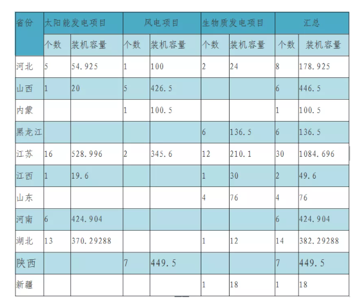 以下為本次公布的集中式可再生能源發(fā)電項目詳情: