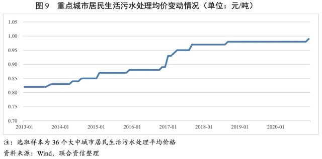 近年來(lái),我國(guó)各地污水處理價(jià)格呈上升趨勢(shì),但大部分城市收費(fèi)標(biāo)準(zhǔn)僅基本滿足國(guó)家規(guī)定收費(fèi)標(biāo)準(zhǔn)下限,部分城市未來(lái)仍有較大上調(diào)空間。