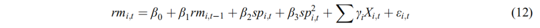 其中rm指區(qū)域資源錯(cuò)配程度;sp指相對(duì)環(huán)境規(guī)制強(qiáng)度;X表示控制變量,包括區(qū)域物流水平(tur)、政府經(jīng)濟(jì)監(jiān)管能力(gfe1)、對(duì)外貿(mào)易依存度(trade)、工業(yè)企業(yè)所有制結(jié)構(gòu)(os1)和外資貢獻(xiàn)度(for);i表示區(qū)域,t表示時(shí)間。