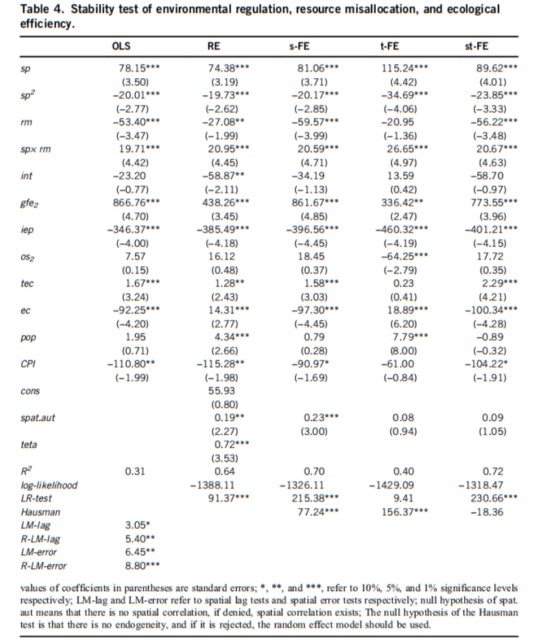 原文題目:Environmental Regulation, Resource Misallocation, and Ecological Efficiency