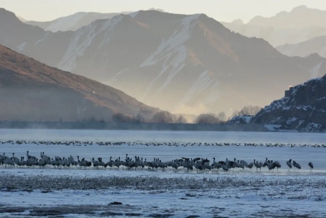 西藏藏南河谷濕地中越冬的黑頸鶴。(來源:生態(tài)環(huán)境部生物多樣性保護(hù)重大工程項(xiàng)目)