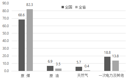 圖3:2019年全省與全國(guó)一次能源生產(chǎn)比重對(duì)比圖