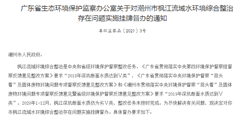 中央環(huán)保督察廣東首個(gè)典型案例出爐,問題果然出在這兒!