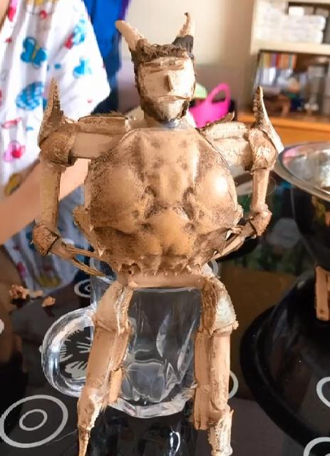 蝦兵蟹將聽(tīng)說(shuō)過(guò)么?有網(wǎng)友閑著無(wú)聊便將吃完螃蟹后的螃蟹殼隨手拼成了“士兵”。不過(guò)這只是隨手為之,但也有網(wǎng)友將螃蟹殼做成了能長(zhǎng)久放置的立體擺件。將螃蟹殼洗凈曬干,裝入關(guān)節(jié)零件進(jìn)行拼接,放入黏土塑型定型,上色拋光打蠟……在一連串復(fù)雜的工藝之后,網(wǎng)友將螃蟹殼,制成了“高達(dá)戰(zhàn)蟹”。