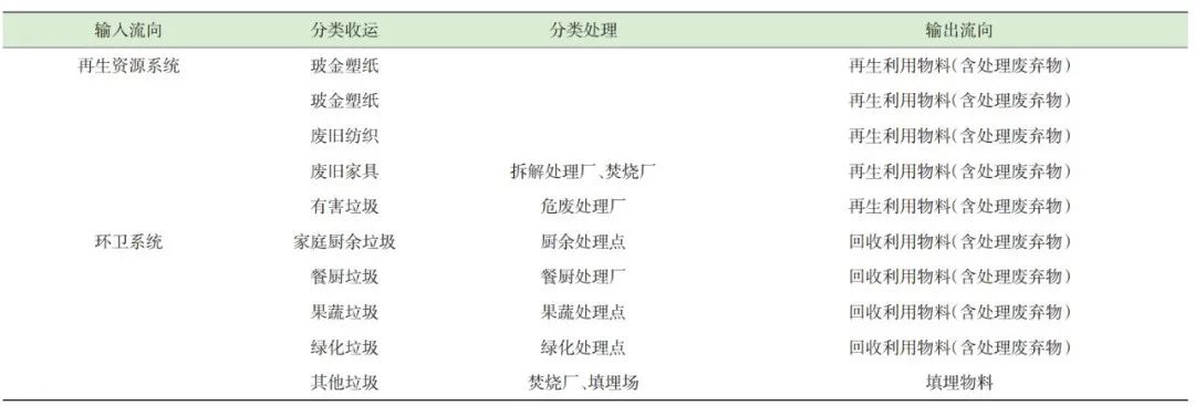 表1 深圳市生活垃圾分類系統(tǒng)物質(zhì)流