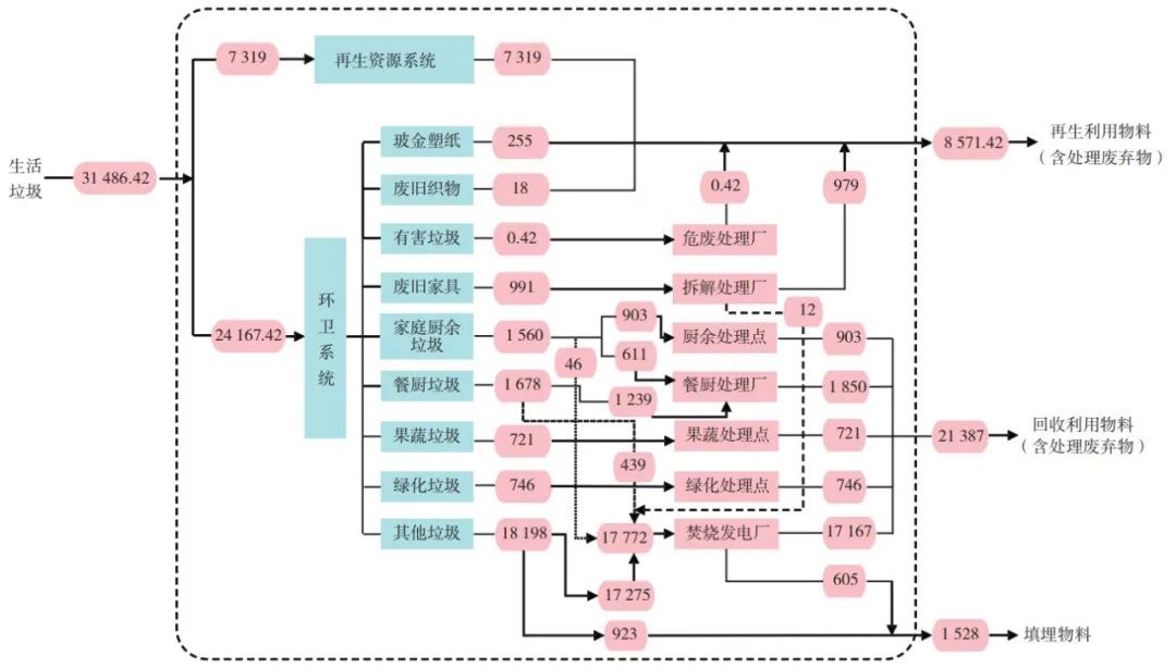 圖1 深圳市生活垃圾分類系統(tǒng)的物質(zhì)流分析框架