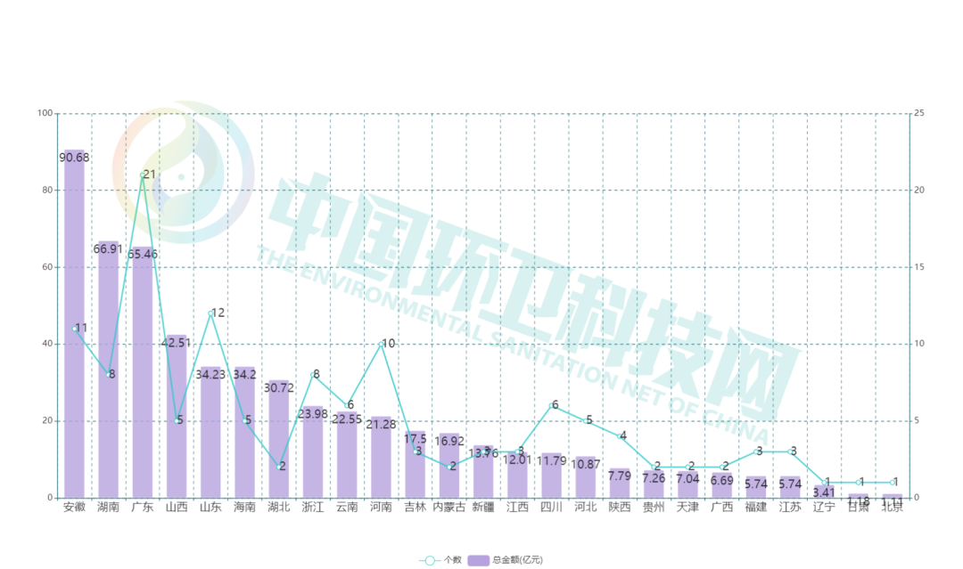 1、數(shù)據(jù)來源于中國政府采購網(wǎng)及各地方政府采購網(wǎng);2、版權歸環(huán)衛(wèi)科技網(wǎng)所有,未經(jīng)書面授權,禁止轉(zhuǎn)載。從中,我們可以發(fā)現(xiàn),該榜單中的億級項目,超半數(shù)被地方國企斬獲,或者由地方國企參與中標。如珠海高華市政綜合管理有限公司、珠海大橫琴城市公共資源經(jīng)營管理有限公司、深圳市平通工程有限公司、鄭州公用事業(yè)投資發(fā)展集團有限公司等,均為地方國企。截至今年9月份,共有25個省/直轄市/自治區(qū)開標了億級環(huán)衛(wèi)項目,其中中標個數(shù)最多的是廣東省,開標個數(shù)21個,其次是山東、安徽,分別是12個、11個;總中標金額最高的是安徽省,開標個數(shù)11個,總開標金額高達90.68億元。1、數(shù)據(jù)來源于中國政府采購網(wǎng)及各地方政府采購網(wǎng);2、版權歸環(huán)衛(wèi)科技網(wǎng)所有,未經(jīng)書面授權,禁止轉(zhuǎn)載。作為環(huán)衛(wèi)市場化水平程度較高的省份,廣東表現(xiàn)依舊優(yōu)異。統(tǒng)計期內(nèi),廣東省共開標21個億級環(huán)衛(wèi)項目,總開標金額達65.46億元,其中半數(shù)為服務期限3年的項目。