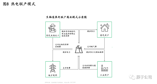 盈利壓力一方面將促進行業(yè)洗牌,在優(yōu)勝劣汰的過程中預(yù)計行業(yè)集中度將逐步提升,民營企業(yè)的份額會逐步降低;另一方面,行業(yè)也在積極探索新的商業(yè)模式,提升項目盈利性,其中熱電聯(lián)產(chǎn)是主要的方向(見圖8)。相比單純發(fā)電賣錢,熱電聯(lián)產(chǎn)在發(fā)電過程中產(chǎn)生的剩余熱量也通過向居民或工業(yè)用戶供熱的方式來獲取收入,能量利用率得到提升,經(jīng)濟效益和社會效益都更好。