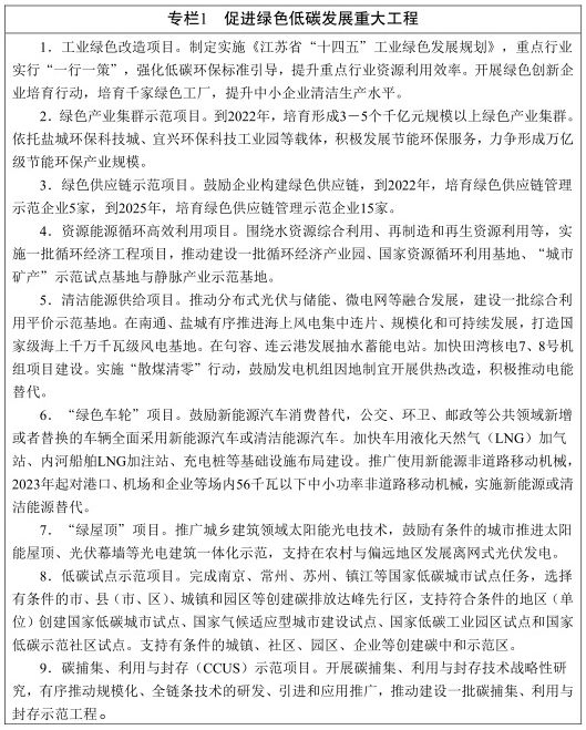 著眼碳達峰碳中和目標,編制實施二氧化碳達峰行動方案,加快建立綠色低碳循環(huán)發(fā)展經(jīng)濟體系,嚴把“兩高”項目準入關口,推進能源資源節(jié)約高效利用,培育綠色低碳新動能,增強應對氣候變化能力,推動經(jīng)濟社會發(fā)展全面綠色轉型。 強化目標約束和峰值引領。實施碳排放總量和強度“雙控”,編制江蘇省碳達峰行動方案以及重點領域、重點行業(yè)專項碳達峰方案,鼓勵有條件的地方和重點行業(yè)、重點企業(yè)率先實現(xiàn)碳達峰。將碳達峰水平納入全省高質量發(fā)展考核和污染防治攻堅戰(zhàn)成效考核,確保完成國家下達我省的碳排放目標任務。