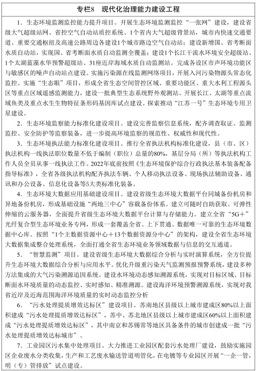 到2025年,美麗江蘇展現(xiàn)新風貌,碳排放強度、主要污染物排放總量持續(xù)下降,生態(tài)環(huán)境質量取得穩(wěn)定改善,環(huán)境風險有效控制,生態(tài)環(huán)境治理體系和治理能力顯著增強,基本建成美麗中國示范省份。