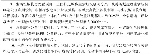 在生活垃圾收運處置方面,規(guī)劃提出,要全面推進城鄉(xiāng)生活垃圾強制分類,統(tǒng)籌規(guī)劃建設生活垃圾終端處理利用設施,積極探索建立集垃圾焚燒、餐廚廢棄物資源化利用、再生資源回收利用、垃圾填埋、有害垃圾處置于一體的生活垃圾協(xié)同處置利用基地。到2025年,全省新增生活垃圾無害化處理能力2萬噸/日,新增餐廚廢棄物處理能力2000噸/日。