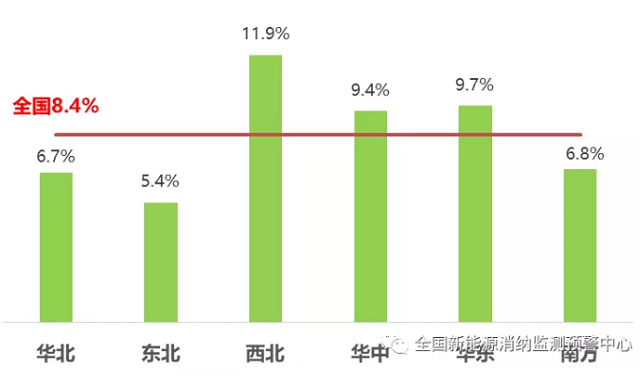 三季度,華北地區(qū)合計(jì)棄風(fēng)電量2.8億千瓦時(shí),棄光電量1.4億千瓦時(shí)。其中,北京、天津基本無(wú)棄電問(wèn)題,山西、山東棄電率維持在較低水平。河北、蒙西棄風(fēng)率分別為0.7%、2.4%,同比下降0.4、0.3個(gè)百分點(diǎn)。蒙西棄光率為2.4%,同比上升1.4個(gè)百分點(diǎn)。