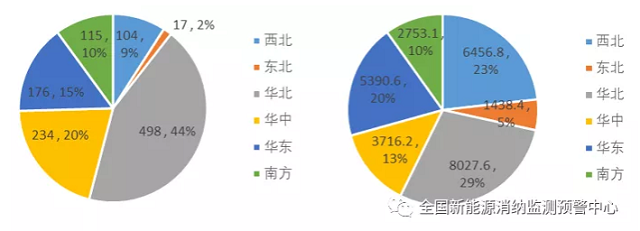 三季度各區(qū)域新增(左)、累計(jì)(右)并網(wǎng)風(fēng)電裝機(jī)(萬(wàn)千瓦)