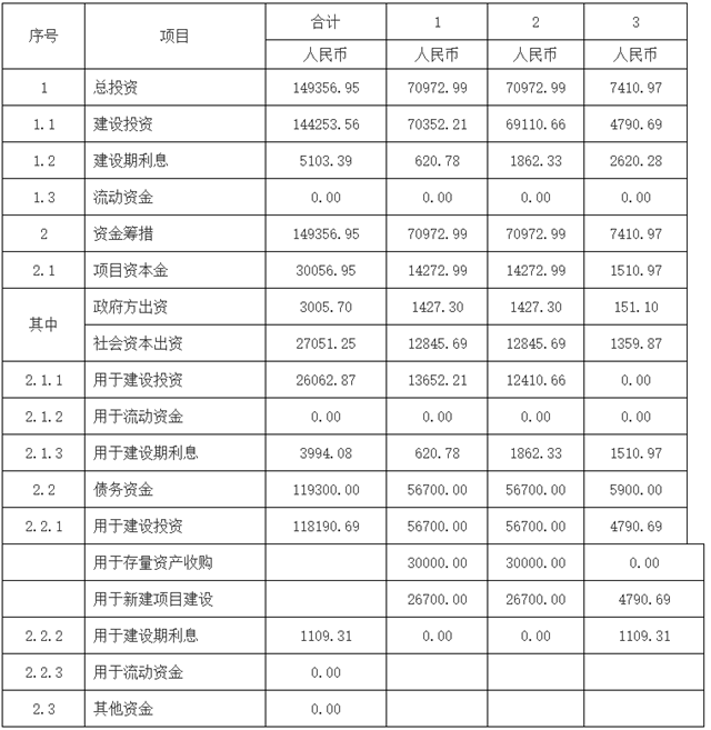 本項目可研報告總投資估算153195.23萬元,其中:(1)新建部分建設(shè)投資72577.25萬元。其中工程費用59394.97萬元,工程建設(shè)其他費用9892.89萬元,基本預備費3289.39萬元。(2)存量資產(chǎn)費用75247.22萬元。(3)建設(shè)期貸款利息5370.76萬元。