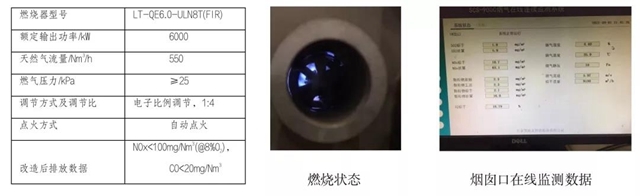 案例一:山東省某化工廠干法氟化鋁工藝反應工藝熱風爐,原NOx排放值在200mg/Nm3左右,經(jīng)改造后NOx排放值在100mg/Nm3以下。