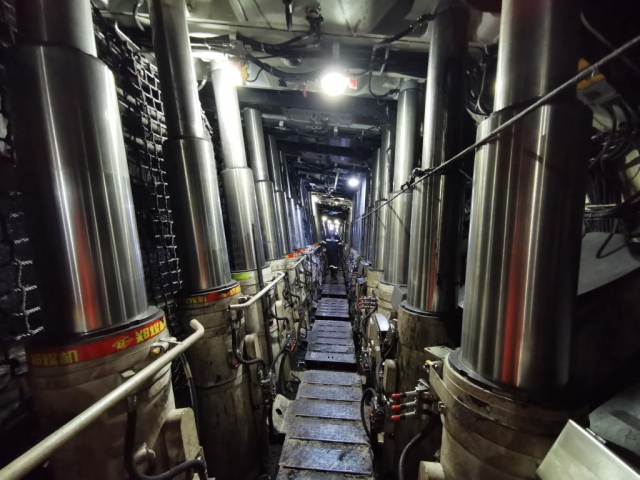 坐在生產(chǎn)指揮車上,記者從羊場灣煤礦的一號(hào)井口開始下井,車輛沿著運(yùn)輸巷道緩緩行駛了約12公里后,到達(dá)了采煤工作面。在垂直地面800米深的井下,早班工人正在忙碌地進(jìn)行設(shè)備檢修,給中班和夜班采煤提供良好的生產(chǎn)準(zhǔn)備。