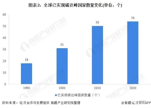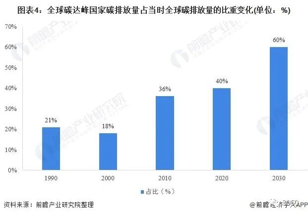 目前,全球已經(jīng)有54個(gè)國家的碳排放實(shí)現(xiàn)達(dá)峰,在已經(jīng)碳達(dá)峰的這些國家占當(dāng)時(shí)全球碳排放量的比例分別為21%、18%、36%和40%。到2030年,屆時(shí)全球?qū)⒂?8個(gè)國家實(shí)現(xiàn)碳排放達(dá)峰,占全球碳排放量的60%。