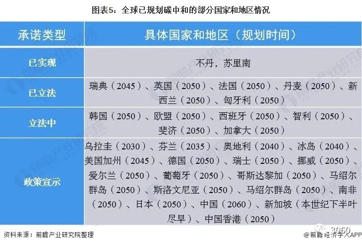 以上數(shù)據(jù)參考前瞻產(chǎn)業(yè)研究院《中國碳中和產(chǎn)業(yè)市場前瞻與投資戰(zhàn)略規(guī)劃分析報(bào)告》目前,全球已有超過120個(gè)國家和地區(qū)提出了碳中和目標(biāo)。其中,大部分計(jì)劃在2050年實(shí)現(xiàn),如歐盟、英國、加拿大、日本、新西蘭、南非等。美國總統(tǒng)拜登已明確表示,將承諾在2050年實(shí)現(xiàn)碳中和。一些國家計(jì)劃實(shí)現(xiàn)碳中和的時(shí)間更早。如烏拉圭提出2030年實(shí)現(xiàn)碳中和、芬蘭2035年,冰島和奧地利2040年,瑞典2045年,蘇里南和不丹已經(jīng)分別于2014年和2018年實(shí)現(xiàn)了碳中和目標(biāo),進(jìn)入負(fù)排放時(shí)代。中國近期宣布爭取在2060年前實(shí)現(xiàn)碳中和。