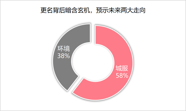 這些企業(yè)更名的共同點(diǎn)在于都在去傳統(tǒng)烙印,要么是去“物業(yè)”,要么去“環(huán)衛(wèi)”,緊跟時(shí)代發(fā)展步伐,在“城市服務(wù)”及“環(huán)境科技”時(shí)代新語(yǔ)境背景下尋找新歸屬。