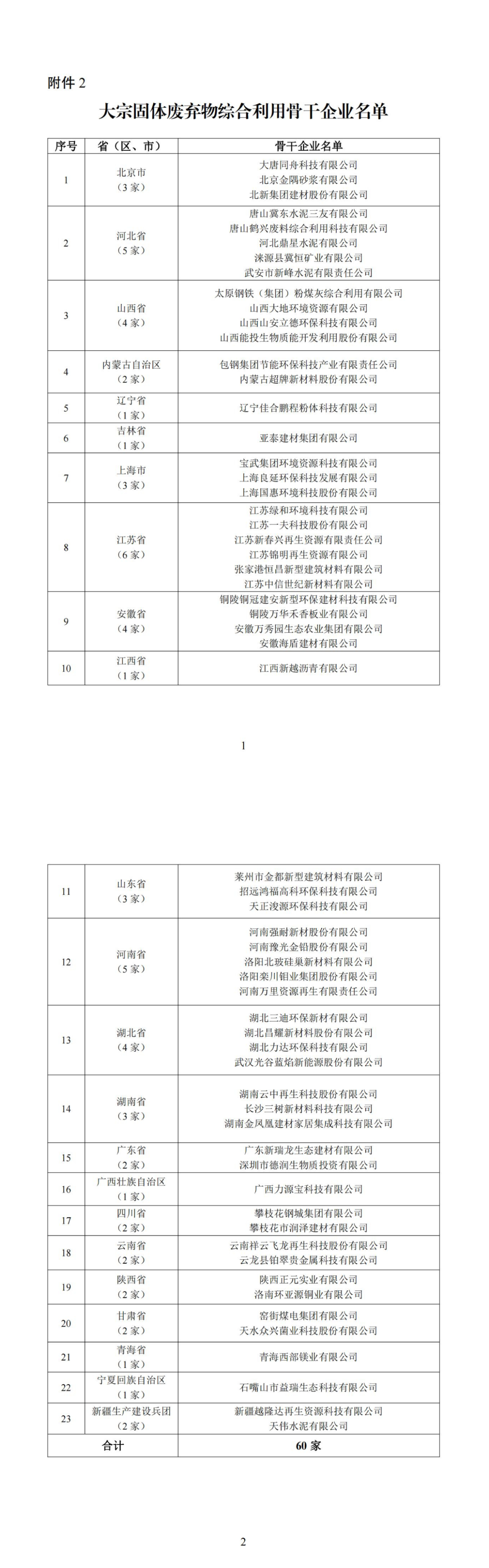 2.大宗固體廢棄物綜合利用骨干企業(yè)名單