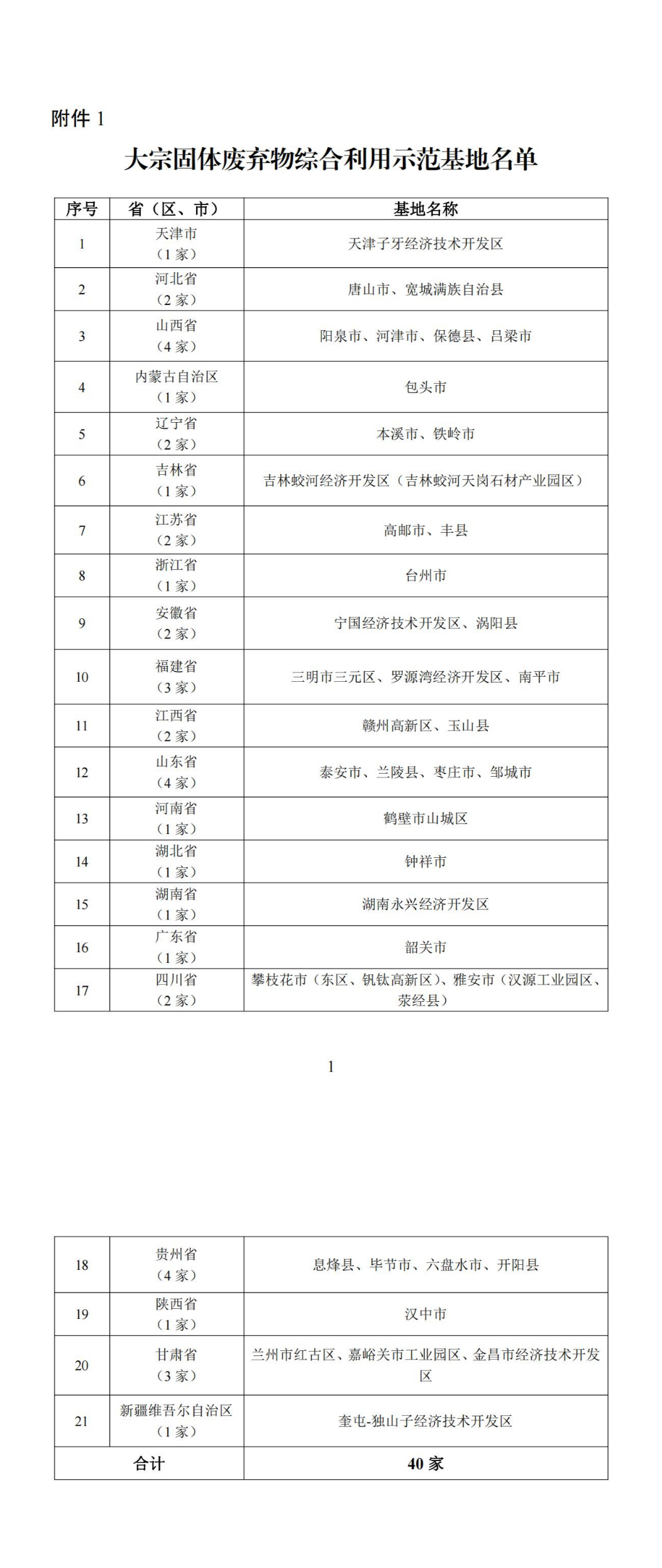 關(guān)于大宗固體廢棄物綜合利用示范基地和骨干企業(yè)名單的公示