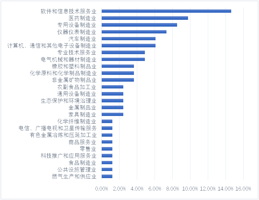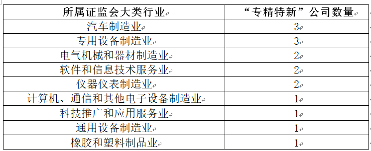 表2.“專精特新”上市公司行業(yè)分布情況(截至12月10日)
