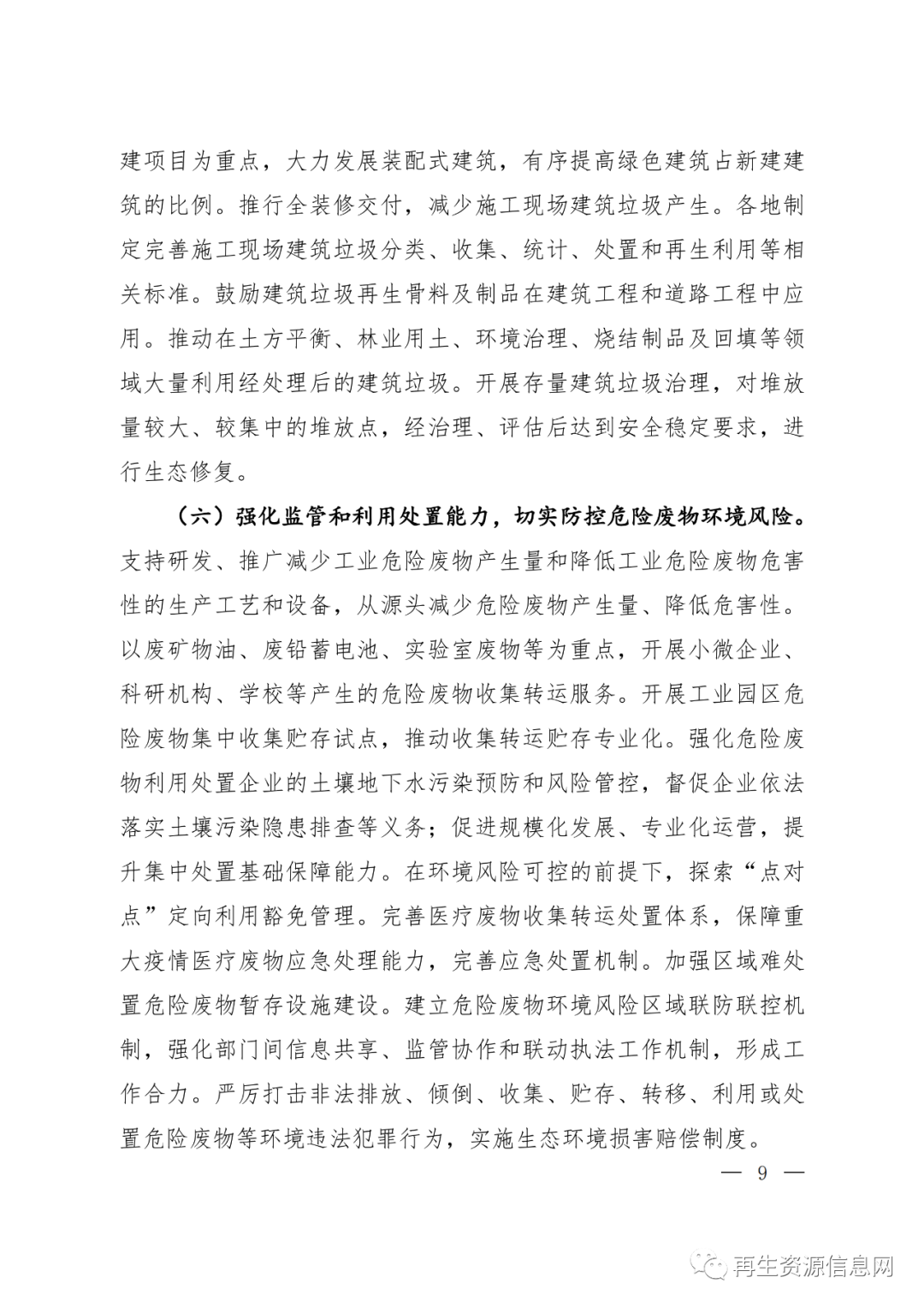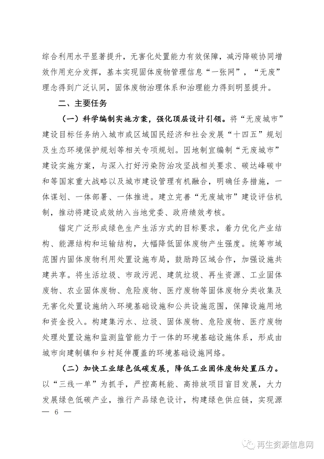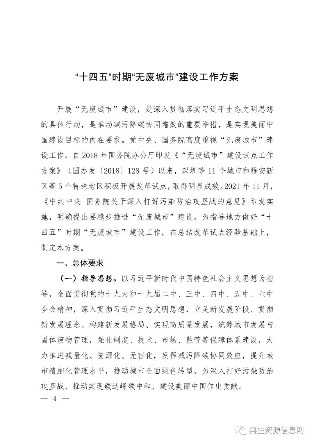 關(guān)于印發(fā)《“十四五”時期“無廢城市”建設工作方案》的通知