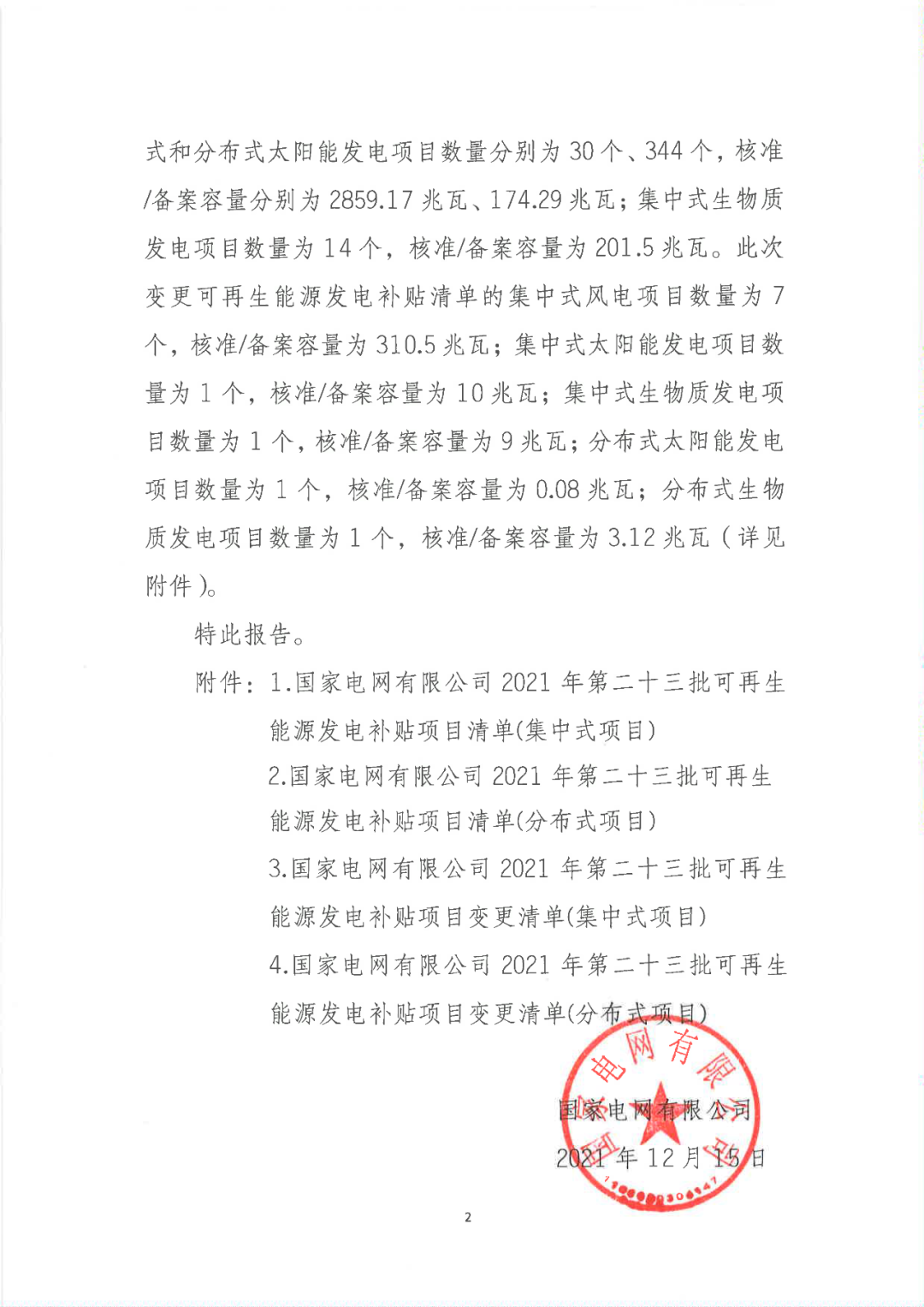 關(guān)于公布2021年第二十三批可再生能源發(fā)電補(bǔ)貼項(xiàng)目清單的公告