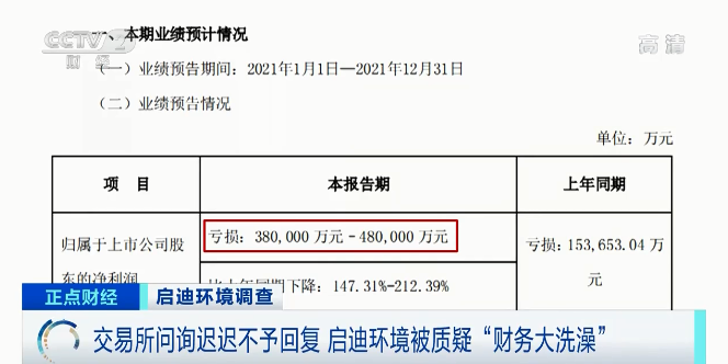 事實上,這已經(jīng)不是啟迪環(huán)境第一次收到問詢函了,2021年7月,啟迪環(huán)境突擊計提22億元資產(chǎn)減值損失,但相關(guān)項目的真實性遭到質(zhì)疑,交易所要求公司說明是否存在“業(yè)績大洗澡”的情形,但一直沒有等到公司的正面回應(yīng)。 上海市某律師事務(wù)所合伙人 徐榮:多次詢問之后,超過5個月以上,這么長的時間還不予回復(fù),它實際上不具有合理性了。那么,就可以去推測它是否存在故意隱瞞,或者去做其它虛假陳述的安排。