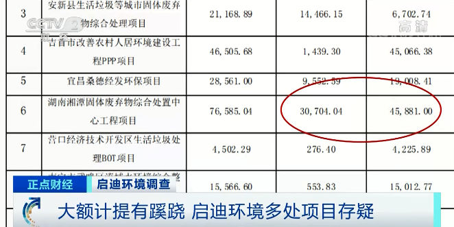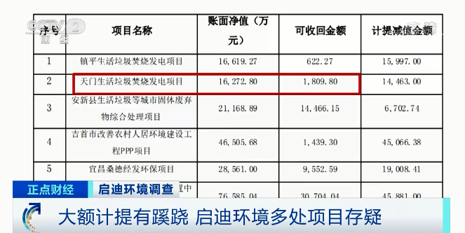 多位知情人士均表示,前幾年聽說過這里要建垃圾焚燒站,只是一開始有人來看過地址,平整場地,但由于附近居民反對,相關(guān)工程根本沒有開始建,更不存在賬面金額達到上億元的可能。湖北省天門市白茅湖農(nóng)場附近村民:那是垃圾發(fā)電廠,就是前幾年的事,劃了位置,最后沒搞起來。湖北省天門市白茅湖農(nóng)場附近村民:是我們親自弄的,不讓他們拖東西進來。沒有建造,只是當(dāng)時搞過提議。估計這邊賠了一百多萬元,那邊賠了兩百多萬元。加起來四百多萬元,不到五百萬元。 除了天門項目之外,啟迪環(huán)境還同時對另外11個項目都進行了計提,記者注意到,這些項目中賬面凈值規(guī)模最大,計提減值金額最高的項目位于湖南湘潭,目前已經(jīng)計提了4.5億元的資產(chǎn)減值損失,可回收金額依然超過3億元。