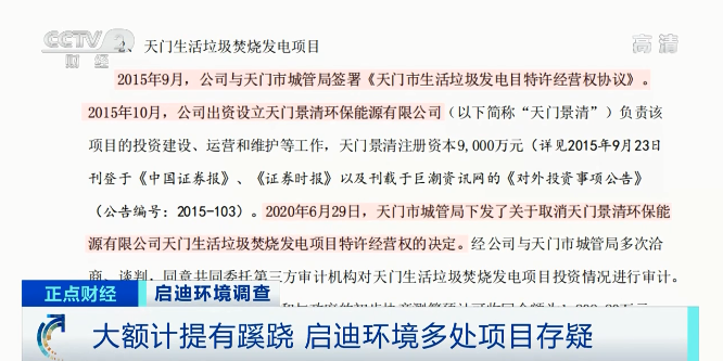 △央視財經(jīng)《正點財經(jīng)》欄目視頻 啟迪環(huán)境對交易所的問詢遲遲不予回復(fù),總部大樓建設(shè)也未如期開展,公司此前備受質(zhì)疑的大額計提又是怎么回事?不少在建工程項目的賬面金額動輒數(shù)億元,這些項目當(dāng)前進度如何?