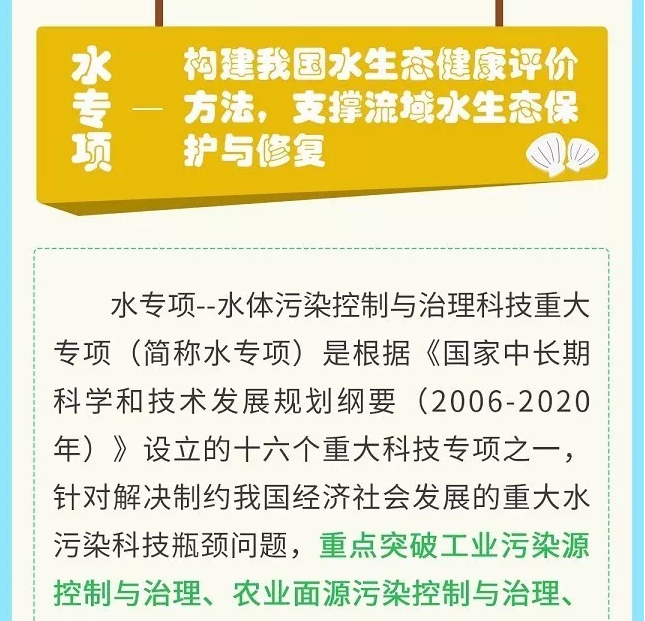 水專項(xiàng)——水體污染控制與治理科技重大專項(xiàng)(簡(jiǎn)稱水專項(xiàng))是根據(jù)《國(guó)家中長(zhǎng)期科學(xué)和技術(shù)發(fā)展規(guī)劃綱要(2006-2020年)》設(shè)立的十六個(gè)重大科技專項(xiàng)之一,針對(duì)解決制約我國(guó)經(jīng)濟(jì)社會(huì)發(fā)展的重大水污染科技瓶頸問(wèn)題。