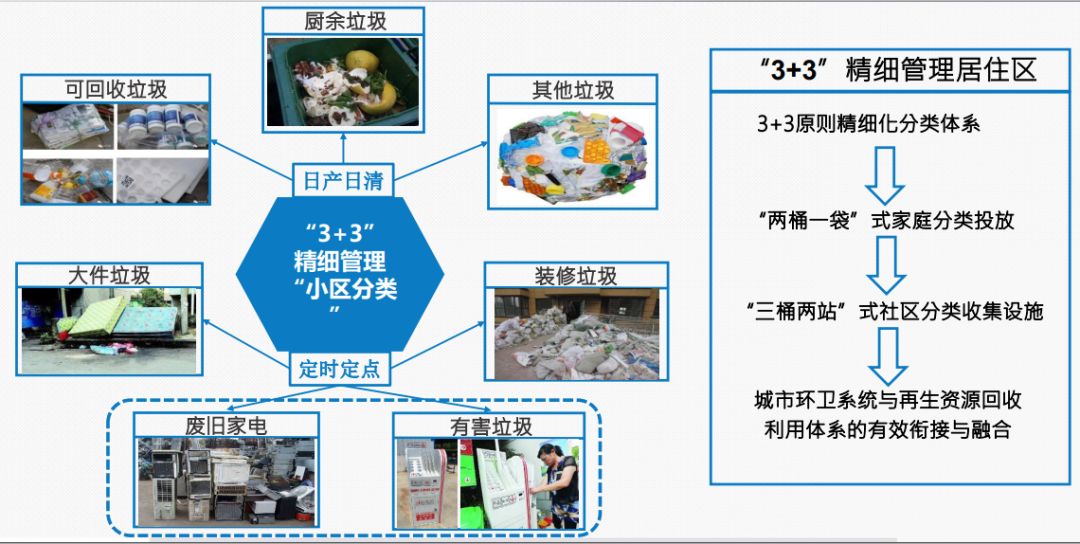 大分流,主要針對廣義的“生活垃圾”,從大的方向上對狹義的“生活垃圾”、大件垃圾、建筑垃圾、園林垃圾、餐飲垃圾、糞便等,建立的分流收運體系,分別進行收集、運輸和處理。