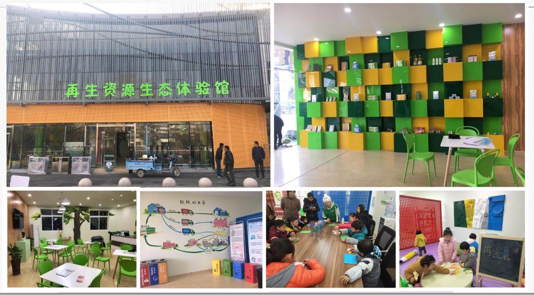 下圖是在合肥投放的智能回收箱,這個回收箱可以積分,也可以換東西,也可以換成錢。此外我們還建立了垃圾分類體驗中心與分揀中心,規(guī)模比較小,主要是幾個社區(qū)的試驗。